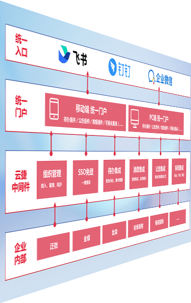 对协作平台提供支持服务,,,支持企业应用与协作平台对接,,,包含组织同步、、消息集成、、、待办集成等。。。。支持目前主流的协作平台:钉钉、、、企微和飞书。。